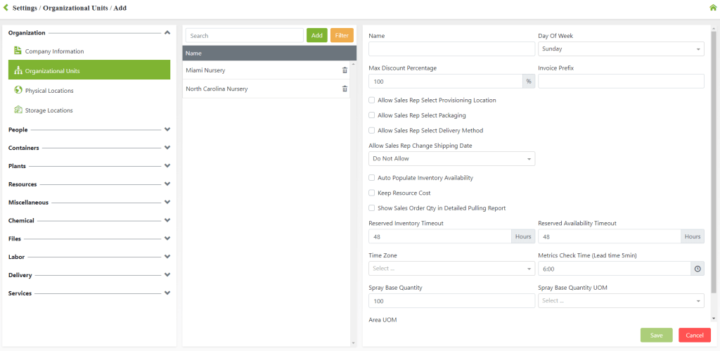 - Allow Sales Rep Select Provisioning Location: Defines if sales representatives can assign the provisioning Packing House to all sales orders.