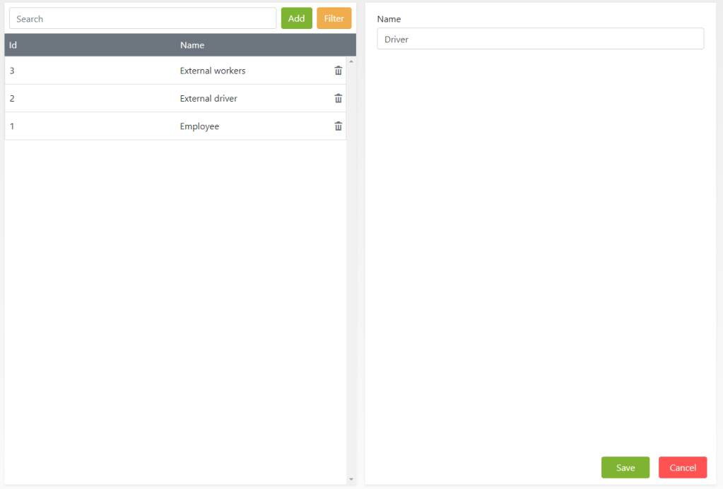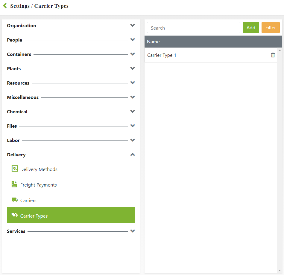 To add a Carrier Type simply click on the Add button and fill out the fields. After that, just Save or Cancel the changes.