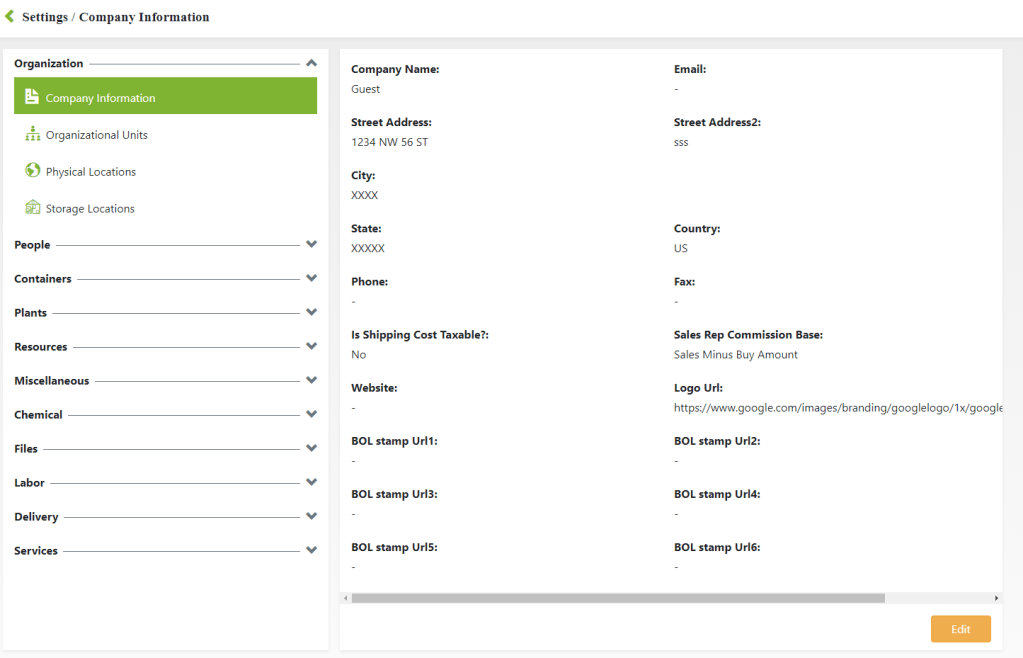 To Edit the Company’s Information simply click on the Edit button and update the fields. Once done with the changes click on the Save or Cancel button.