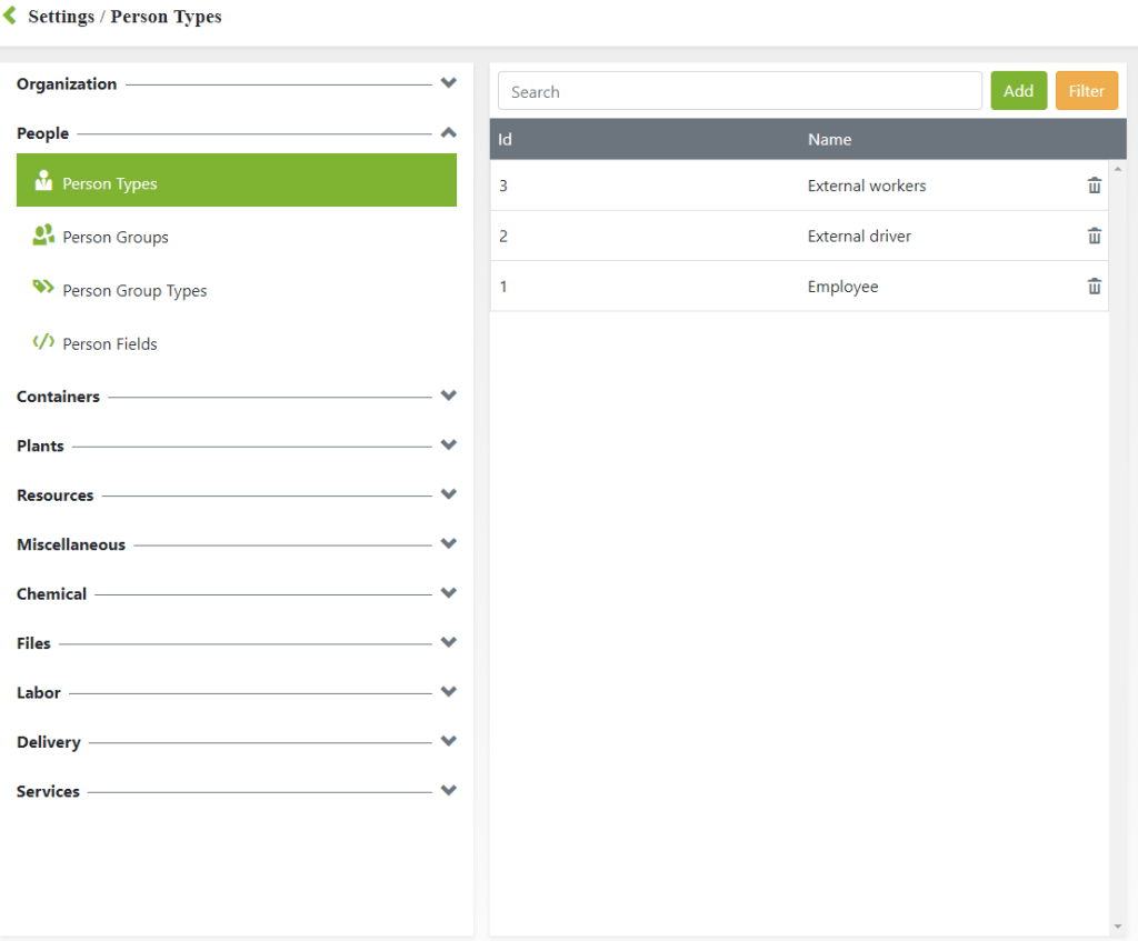In this page users are able to edit information about their company like Organizational Units, Physical Locations, Persons and their roles, Plants and Resources, amongst others.