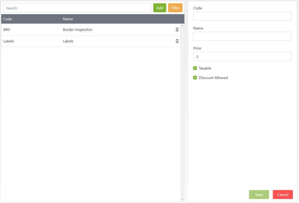 To add a Service simply click on the Add button and fill out the fields. After that, just Save or Cancel the changes.