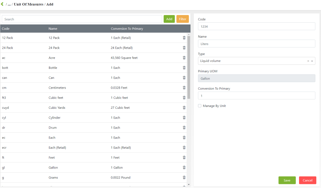 - Area UOM: Base unit of measure used to define physical location areas. Example: Acre, Square Meter, Hectare, etc.