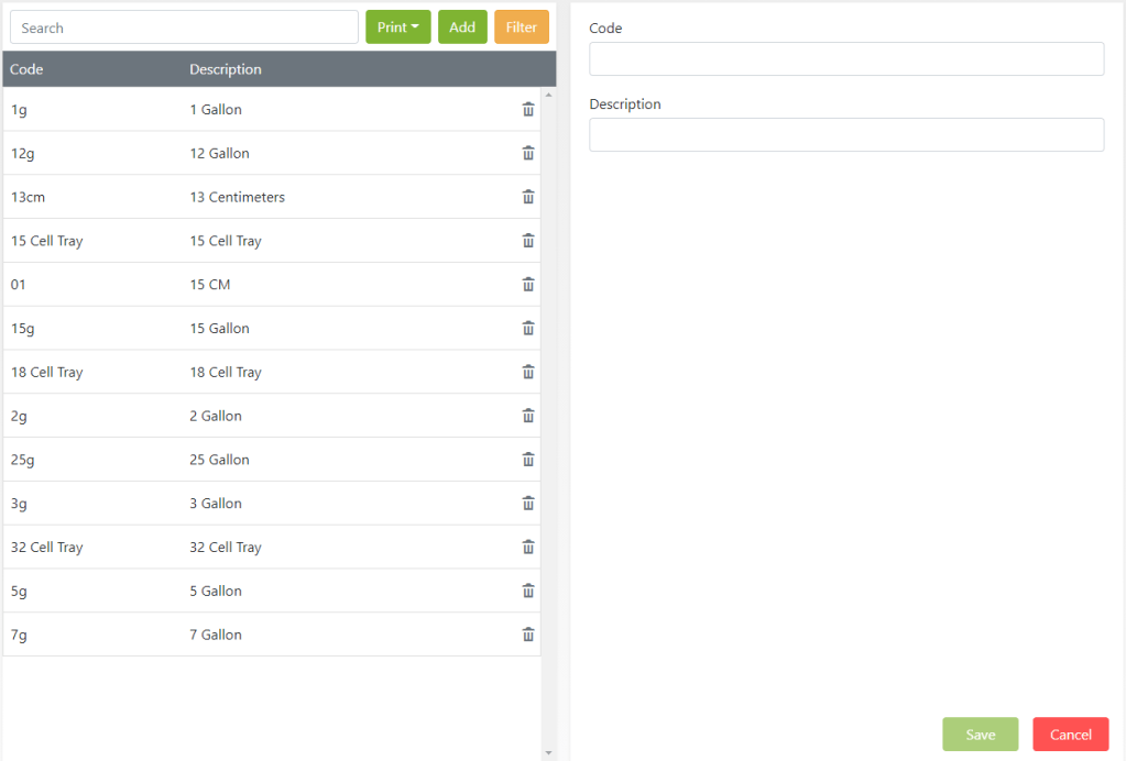 The inventory is fully integrated with production, sales and purchasing processes. Every time a production task, a picking order or reception order is completed the inventory is automatically updated making it very easy to maintain. Plants availability can be reported in the field using our mobile app.
