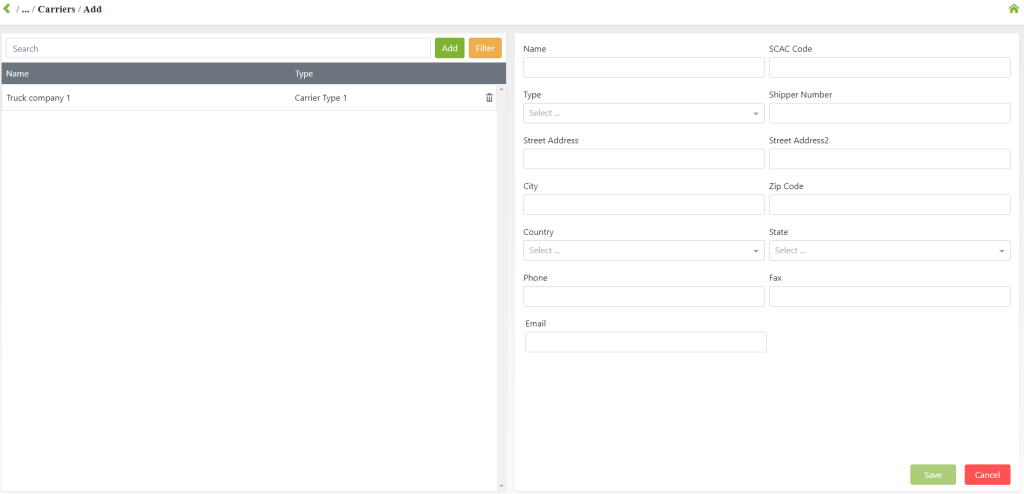To add a Carrier simply click on the Add button and fill out the fields. After that, just Save or Cancel the changes.