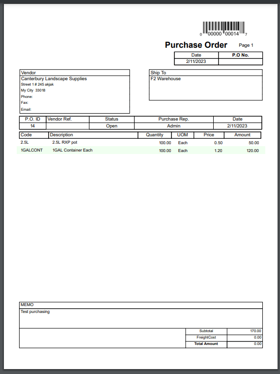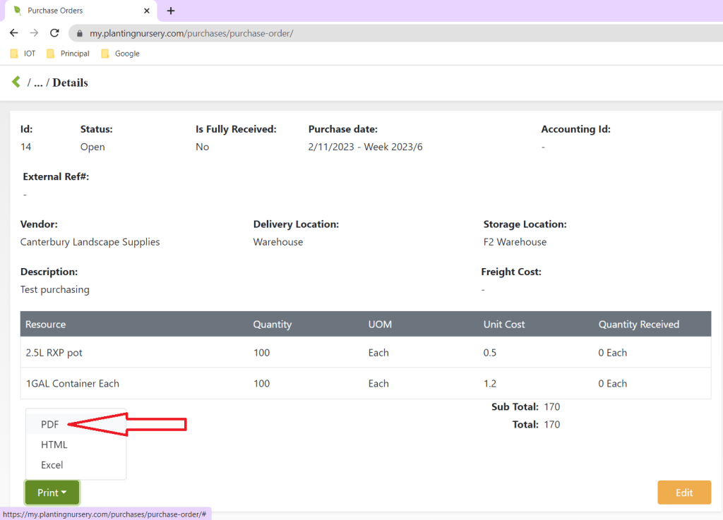 When you save your purchase order, you can print it or download it and send it to the vendor.