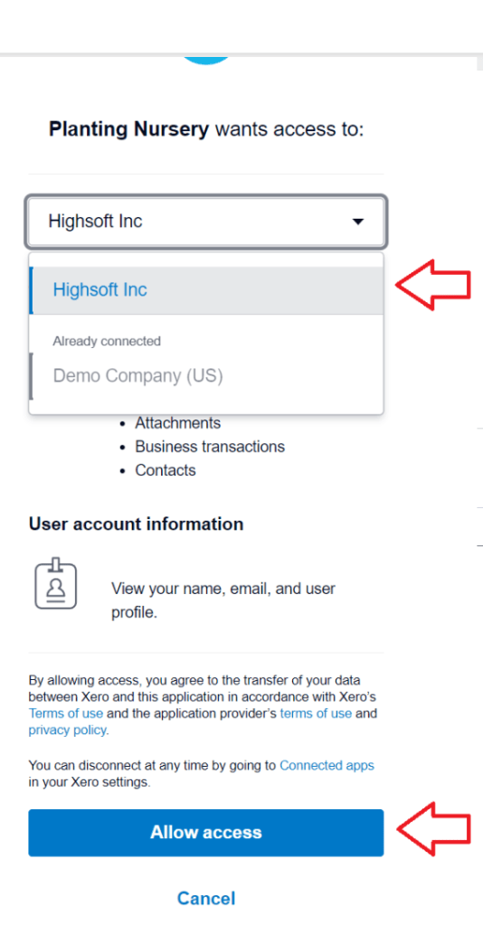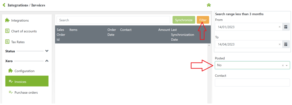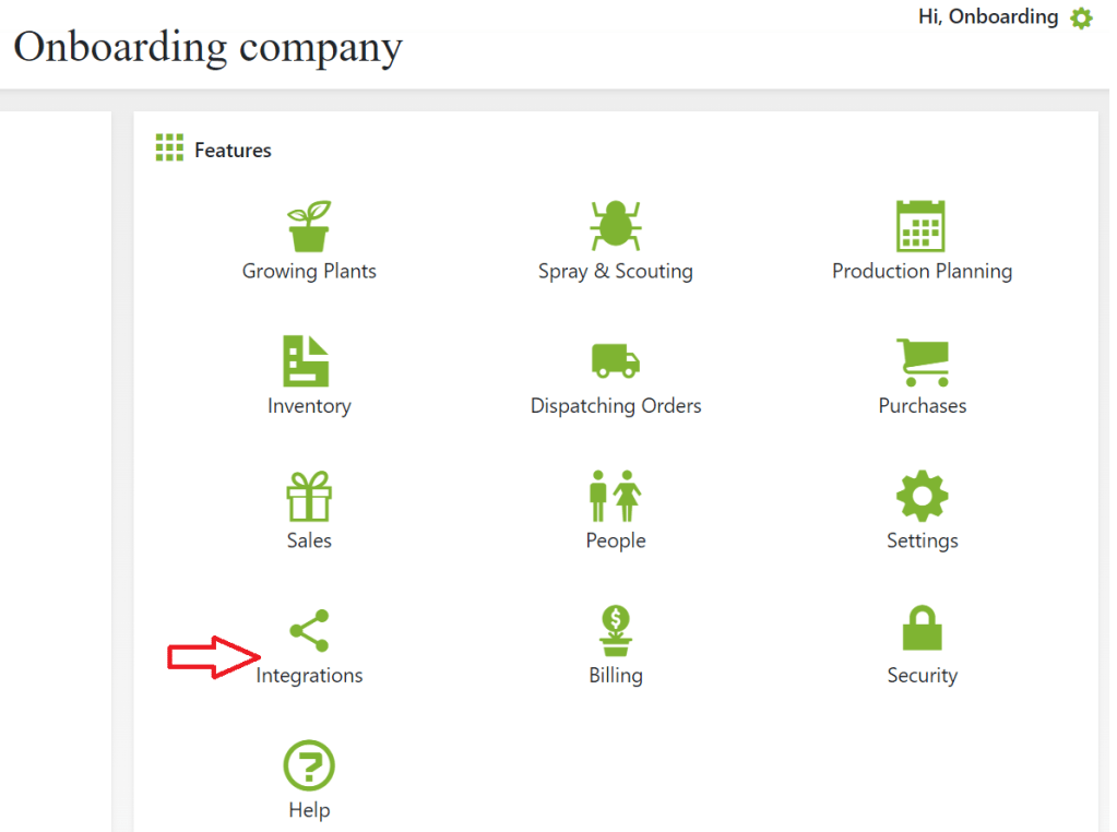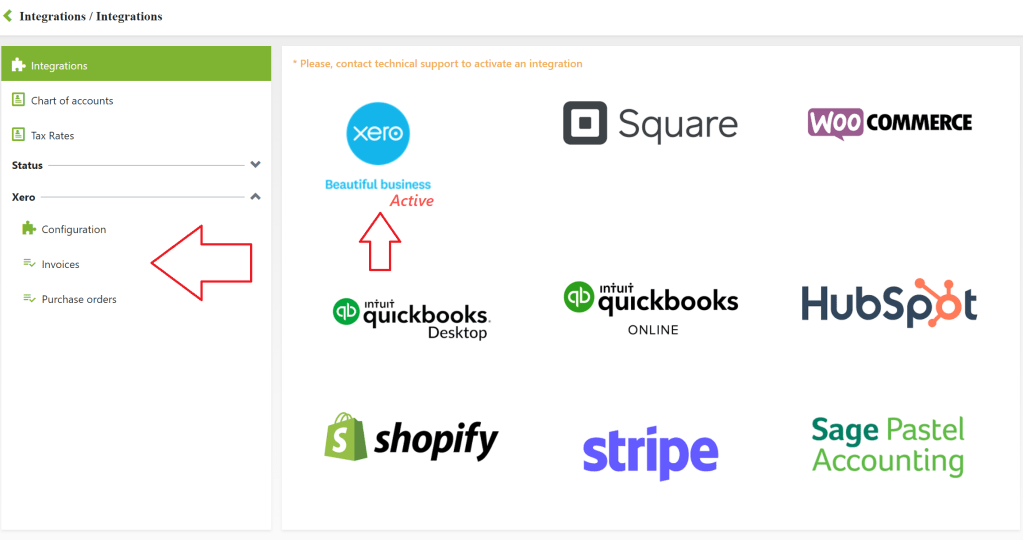 Send a request to technical suport (support@plantingnursery.com) for Xero integration activation. Once your integration is active, Xero section will be available and Xero icon wil be active.